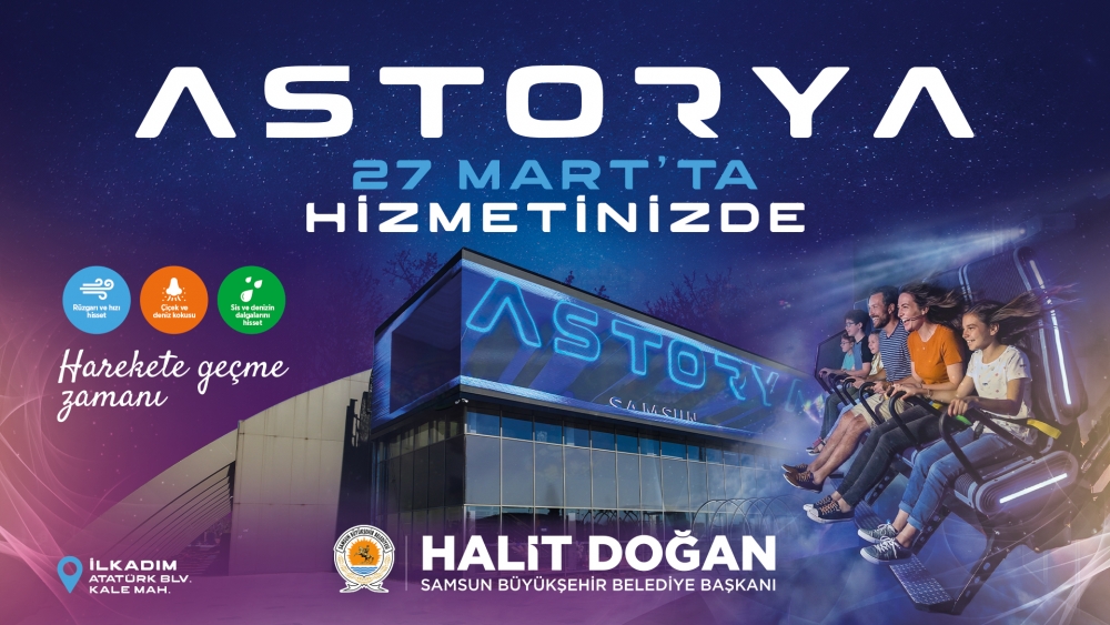 Kente yeni sosyal alanlar kazandırmak, gençlerin, çocukların ve ailelerin sosyal yaşamına renk katmak ve etkinlik alanlarını artırmak adına çalışmalarını sürdüren Samsun Büyükşehir Belediyesi, Türkiye’de bir ilk olarak Flying Theater projesi “Astorya”yı Samsun’a kazandırdı. Tüm çalışmaların ve hazırlıkların tamamlandığı Astorya 27 Mart Cuma gününden itibaren ziyaretçilerini ağırlamaya başlayacak.
