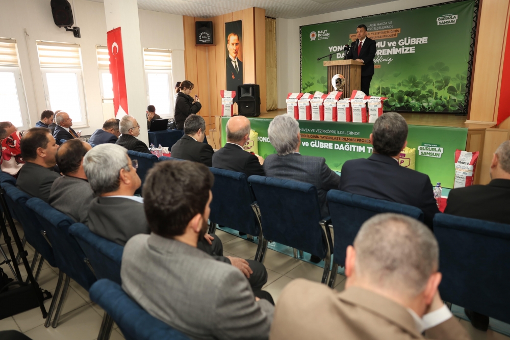Programda konuşan Samsun Büyükşehir Belediye Başkanı Halit Doğan, “Samsun; doğasıyla, kültürüyle ve üretim gücüyle eşsiz bir mozaik şehirdir. Bu mozaiği asıl anlamlı kılan ise Lâdik’ten Vezirköprü’ye, Havza’dan Asarcık’a kadar bu toprakları nasırlı elleriyle işleyen üreticilerimizin emeğidir. Yem Bitkileri Yetiştiriciliğinin Yaygınlaştırılması Projesi kapsamında Yonca Tohumu ve Gübre Dağıtım Töreni’ni gerçekleştirdik. Bugün, bir yıl önce Vezirköprü’de verdiğimiz o sözün arkasında durmanın haklı gururunu yaşıyoruz. Üreticimiz yeter ki üretsin. Biz her zaman, her koşulda onların yanında olmaya, yükünü paylaşmaya devam edeceğiz. Bu vesileyle, projemizde emeği geçen tüm çalışma arkadaşlarıma teşekkür ediyor; üreticilerimizin tohumlarının bereketli, hasadının bol, kazancının daim olmasını diliyorum” dedi.